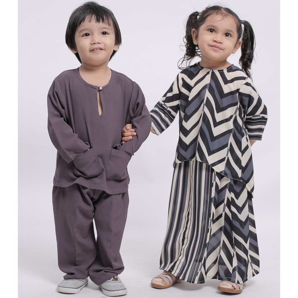 Baju Kurung Cantik Hari Raya Kanak Kanak Grey Black Clearance Nks Shopee Malaysia